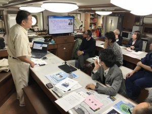 大学との産学連携や、大学が持つ先端技術を知る「きっかけづくり」のためのオープンな場を目指した事業です。2020年2月20日に鹿児島港小川埠頭に停泊中の水産学部附属練習船「南星丸」にて今年度8回目のかごしまTechミーティングを開催しました。産学・地域共創センターは、研究シーズや研究者情報の提供や交流の促進を担っており、今回は藤枝特任教授がファシリテーターを務めました。