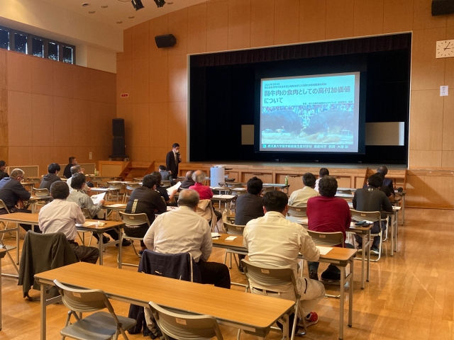 セミナーには闘牛飼養者や行政関係者など約30名が参加し、講演後には意見交換会も行われました。