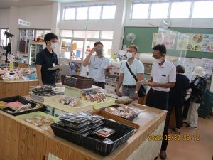 写真左:ラウンドテーブルの様子,右:南種子町観光物産館トンミー市場視察